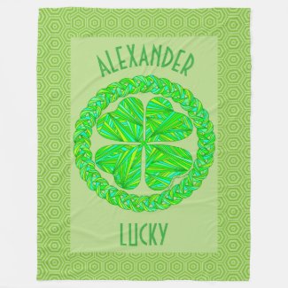 Lucky Celtic Shamrock Four Leaf Clover Green Irish Fleece Blanket by TheArtOfVikki